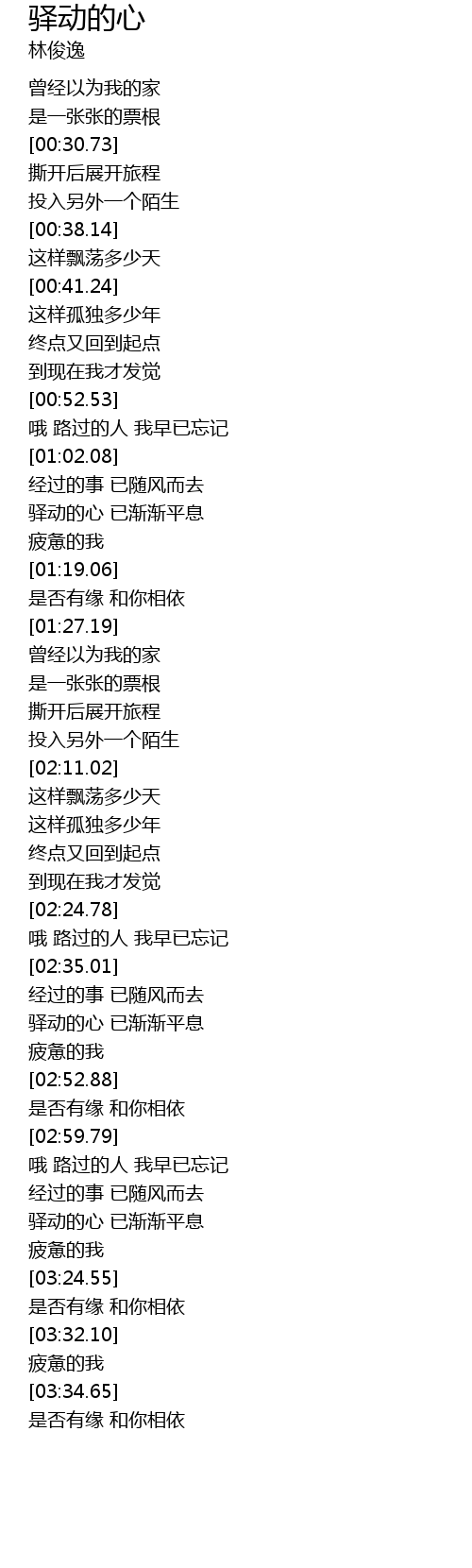 | [03:16.35] | 驿动的心 已渐渐平息 |