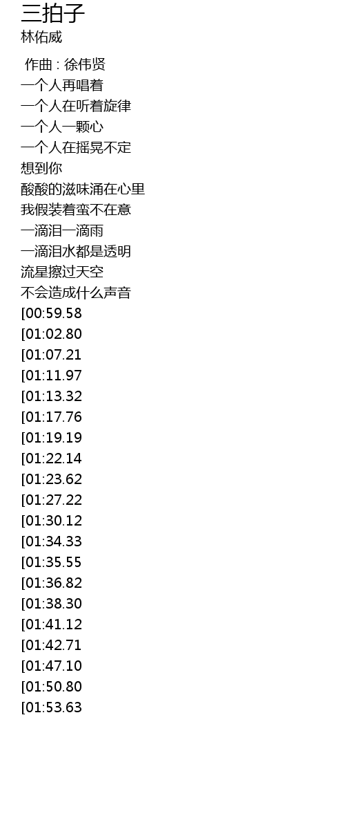 | [03:16.20][01:38.30] | 随着这三拍子 |