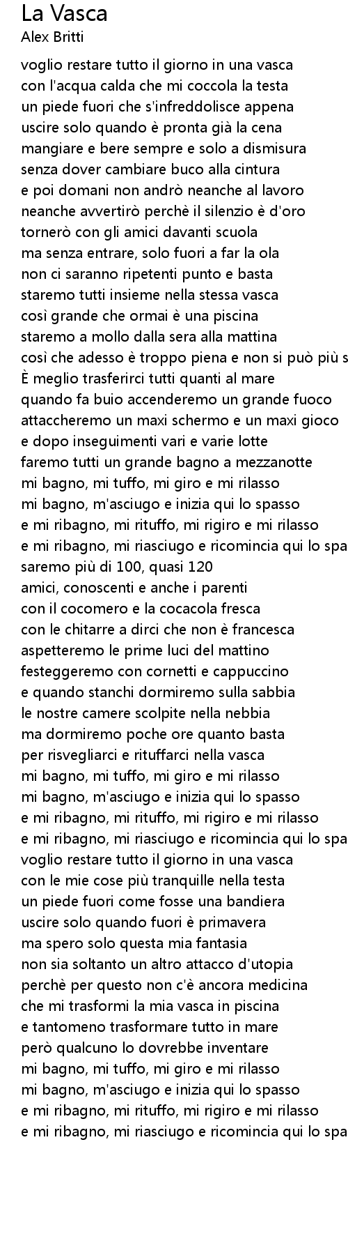 | e mi ribagno, mi rituffo, mi rigiro e mi rilasso | |