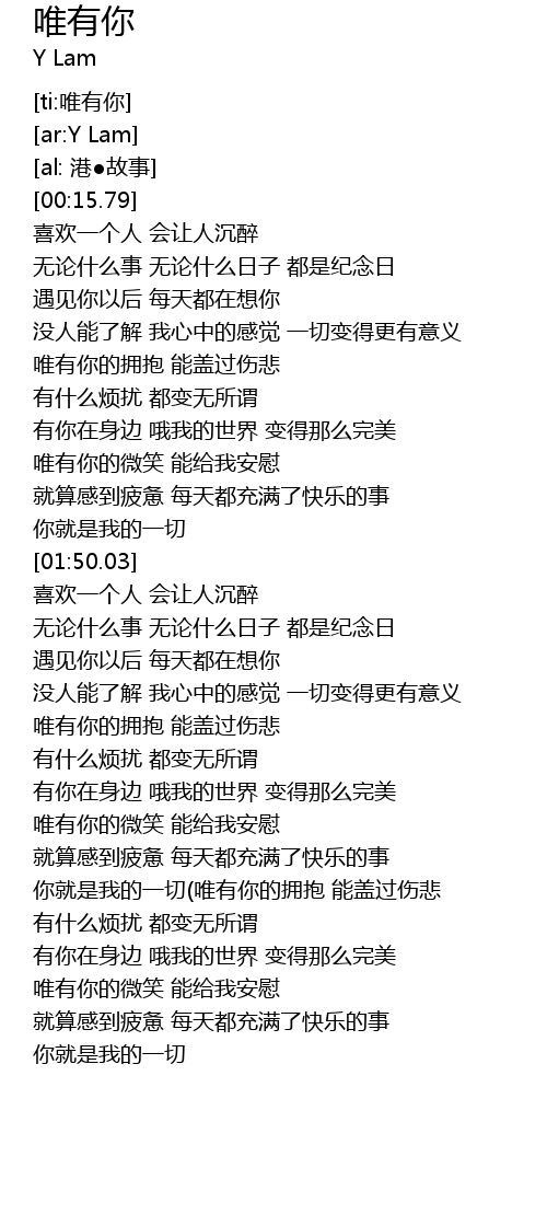| [01:42.50] | 你就是我的一切 |