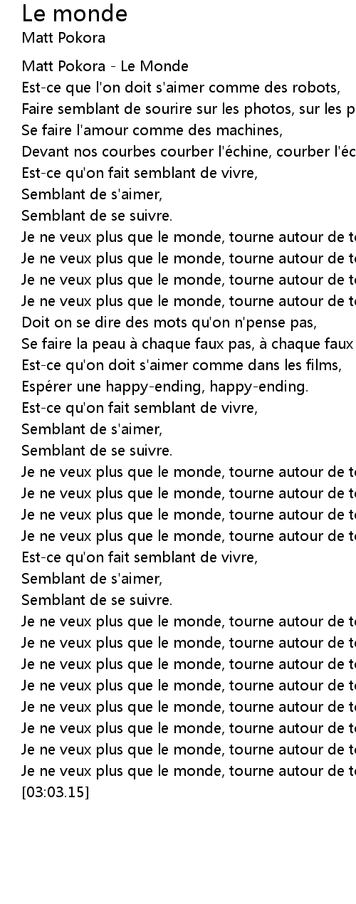 | [00:00.36] | Matt Pokora Le Monde |