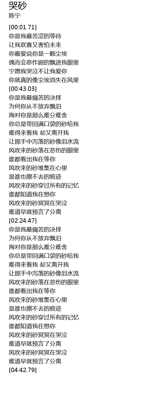 | [04:13.67] | 风吹来的砂冥冥在哭泣 |