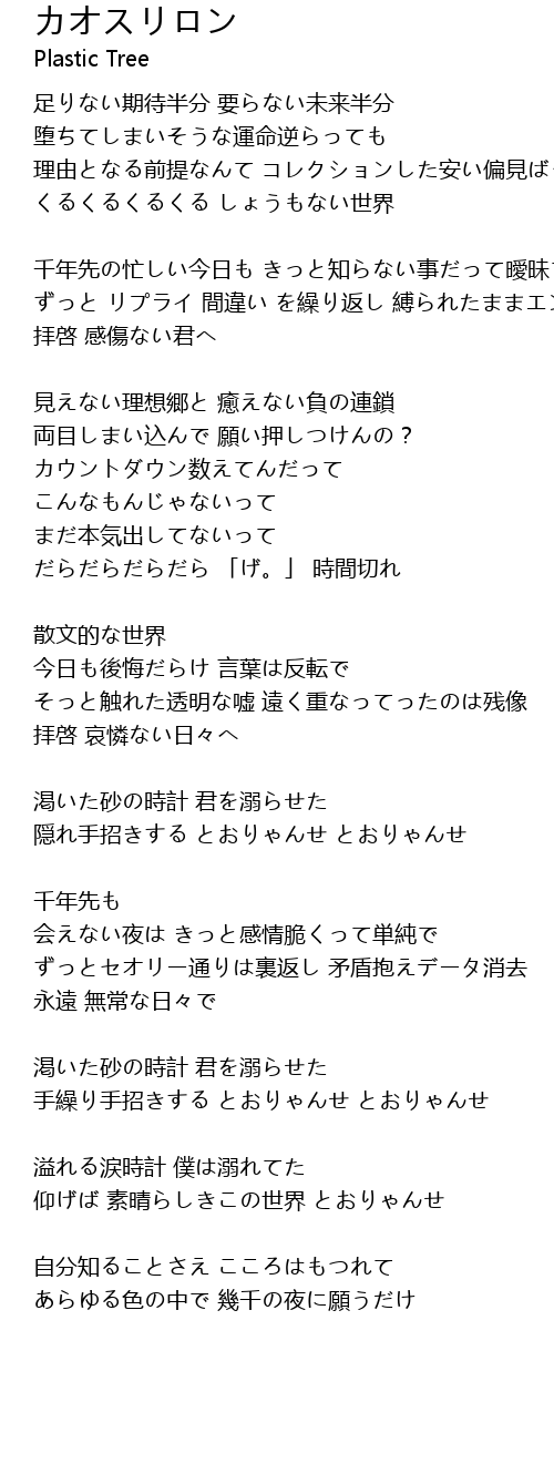 | Artist | Plastic Tree |