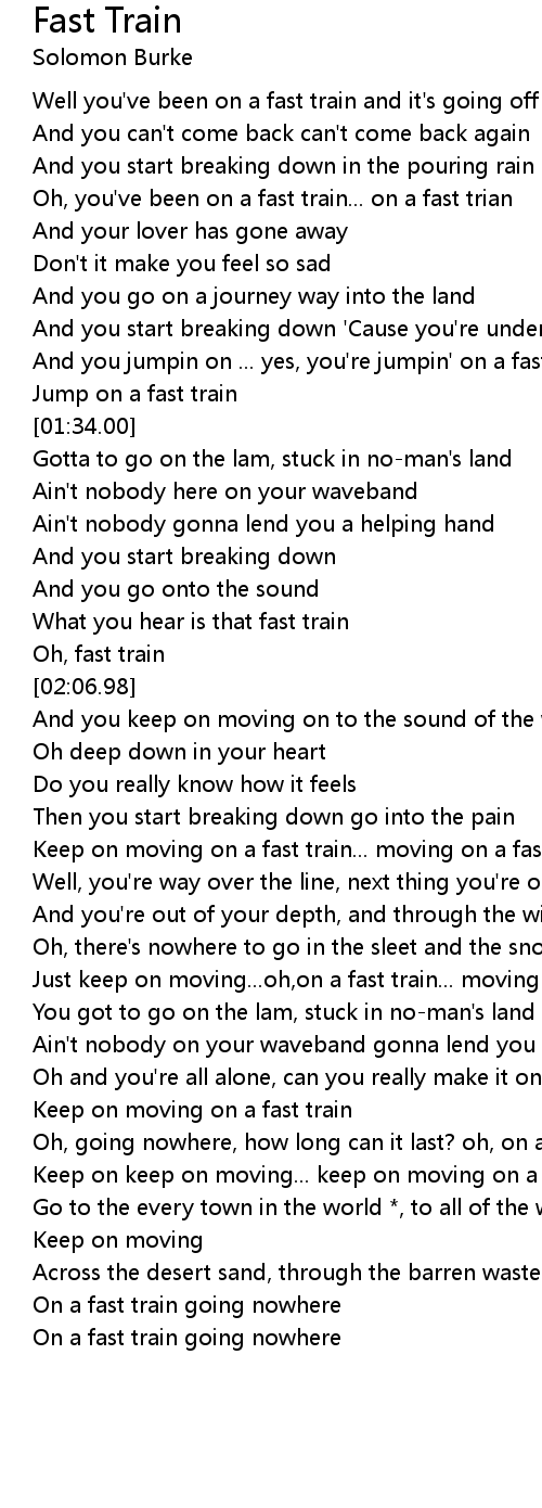 Just keep on moving...oh,on a fast train... moving on a fast train |