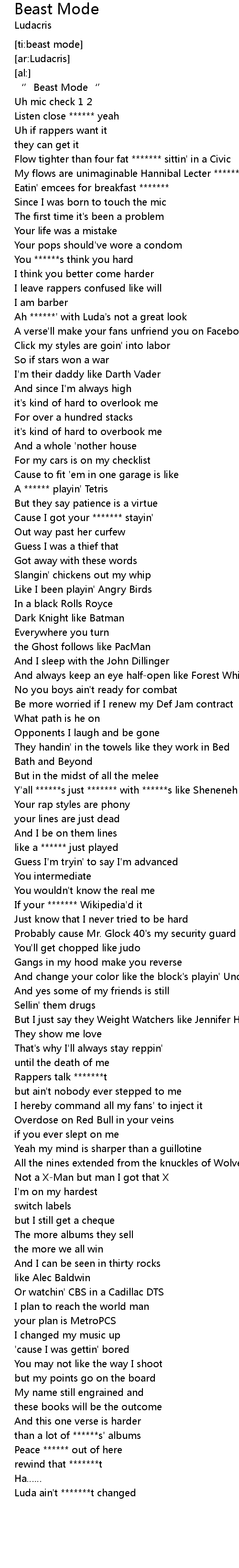 | [03:11.61] | Luda ain't *******t changed |