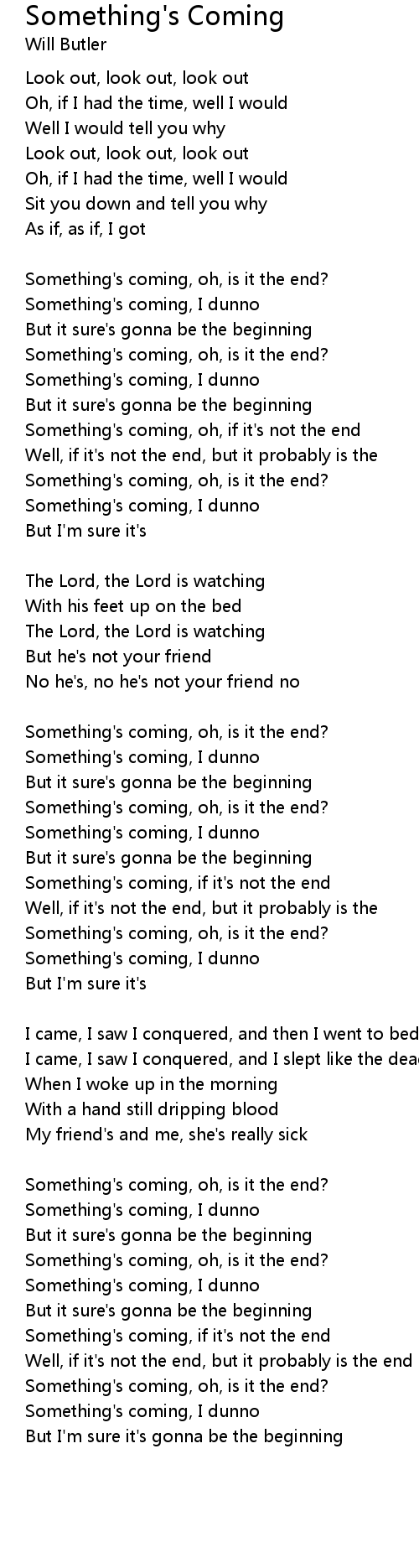 Something's coming, oh, is it the end?