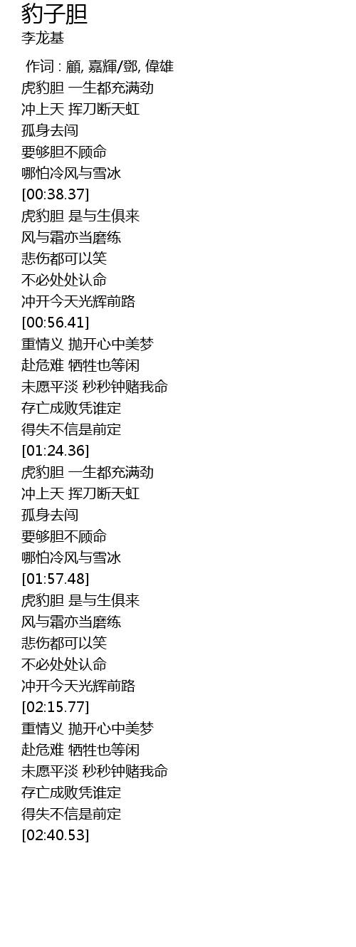 | [01:40.40] | 虎豹胆 一生都充满劲 |