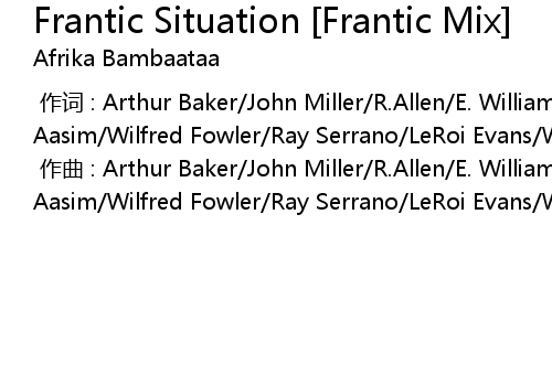 | [00:00.000] | 作词 : Arthur Baker/John Miller/R.Allen/E. Williams/Bambaataa Aasim/Wilfred Fowler/Ray Serrano/LeRoi Evans/W. Henderson |