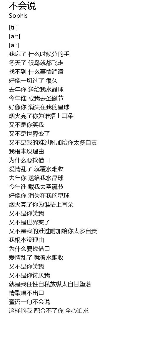 | [03:00.84] | 蜜语一句不会说 |