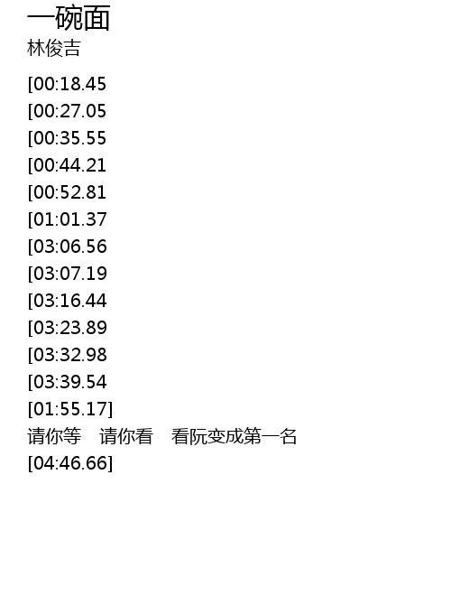 | [04:22.17][03:39.54][01:43.54] | 请你等 请你看 看阮变成第一名 |