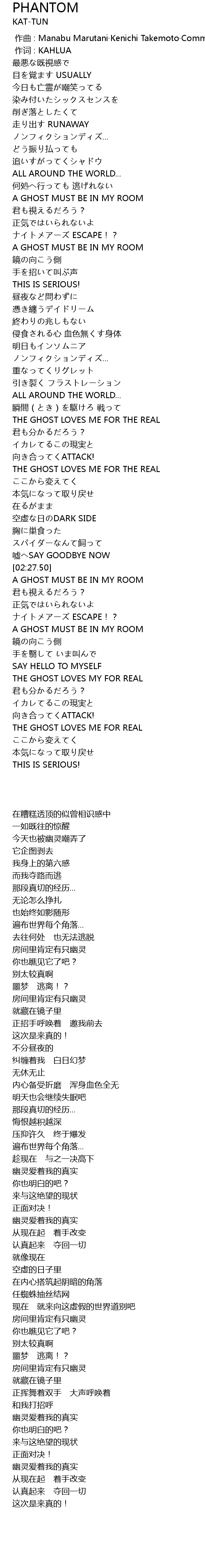 | [00:48.12] | A GHOST MUST BE IN MY ROOM |