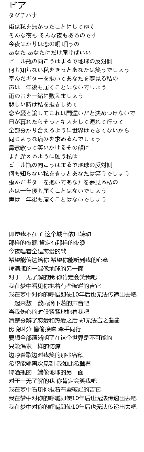 | [03:08.570] | ビール瓶の向こうはまるで地球の反対側 |
