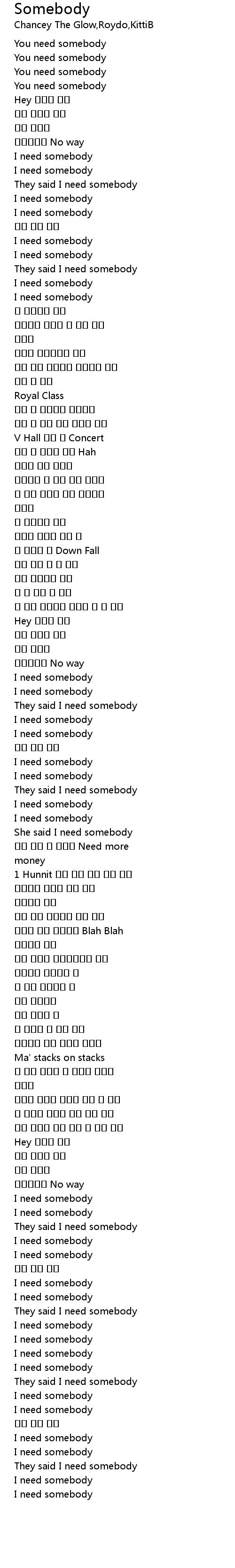 | [01:35.100] | They said I need somebody |
