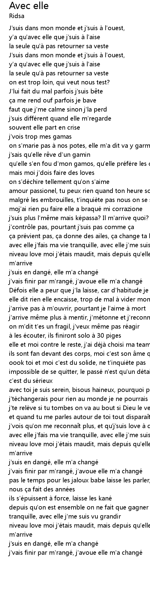| avec elle j' fais ma vie tranquille, avec elle j' me suis vu grandir | |