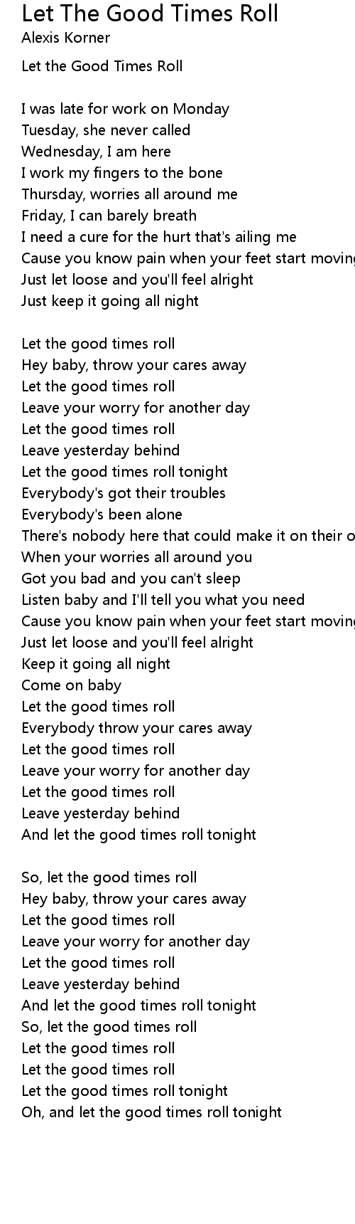And let the good times roll tonight |