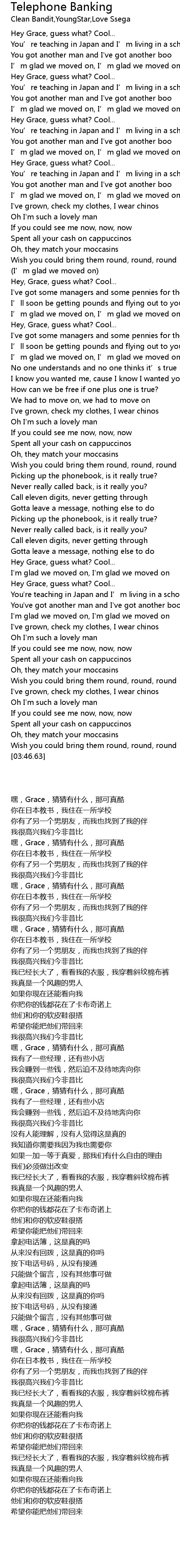 | Song | Telephone Banking |