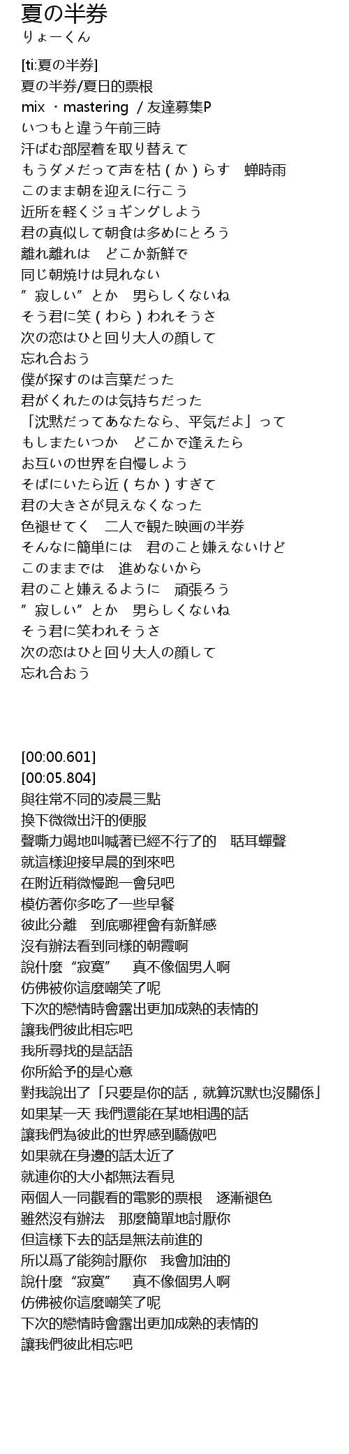 | [00:00.601] | 夏の半券/夏日的票根 |