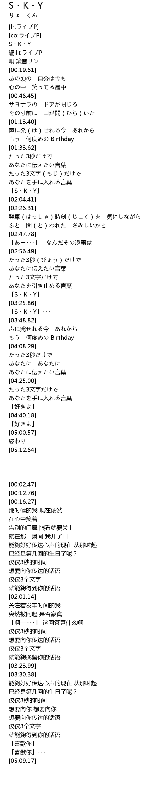 | [00:02.47] | S・K・Y |