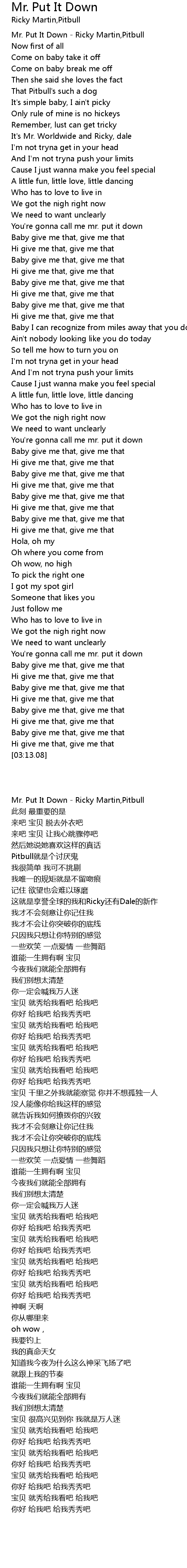 Mr. Put It Down - Ricky Martin,Pitbull |