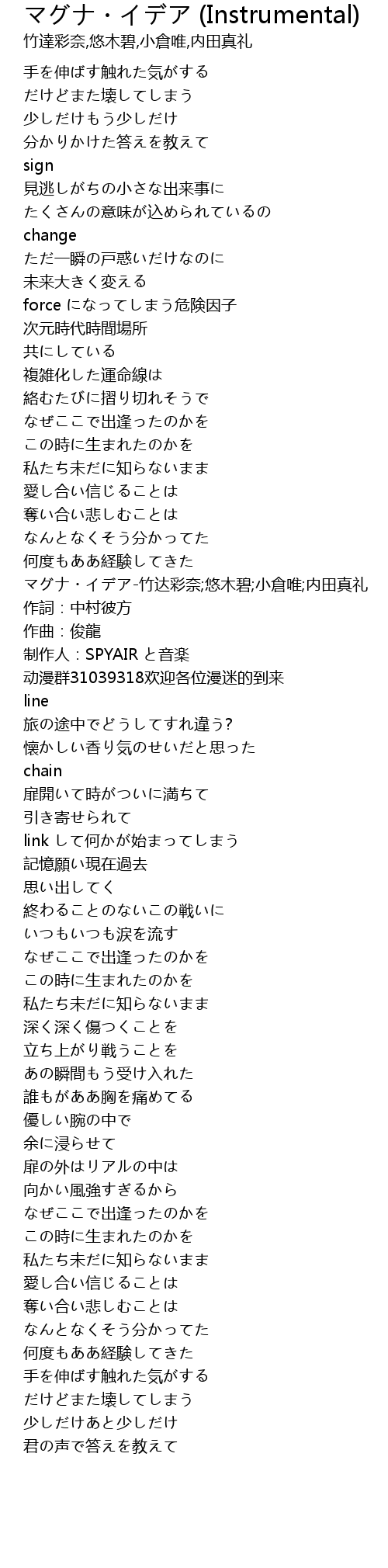 | [01:29.48] | マグナ・イデア-竹达彩奈;悠木碧;小倉唯;内田真礼 |