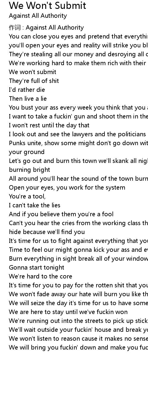 | Punks unite, show some might don' t go down without a fight don' t backdown, stand your ground | |
