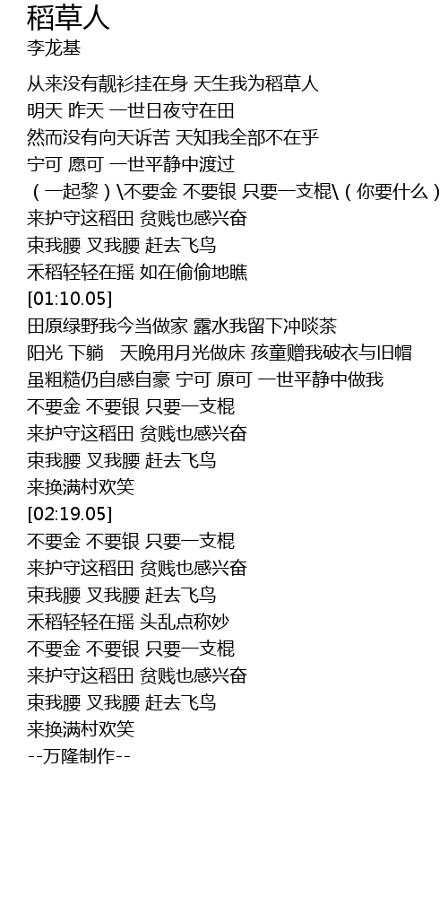 | [02:50.05] | 来护守这稻田 贫贱也感兴奋 |
