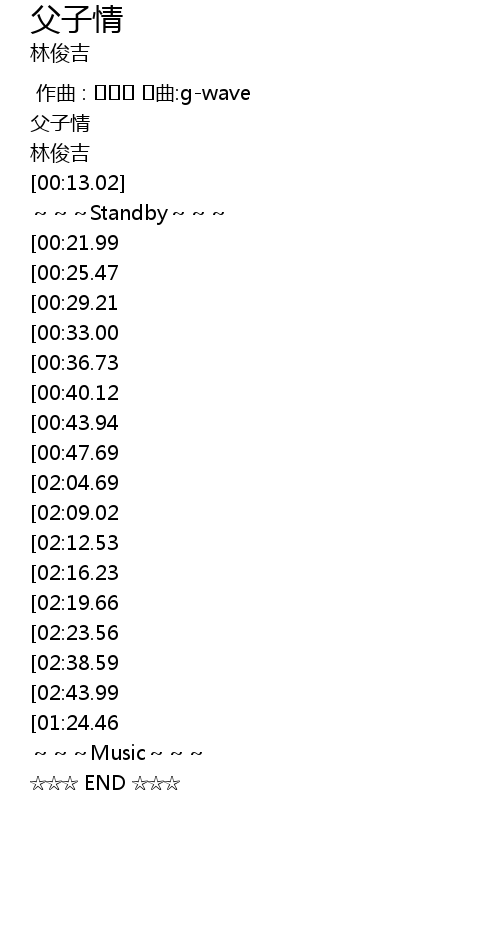 | [03:17.30][02:43.99][02:32.88][01:19.01] | 再結父子 的緣分 |