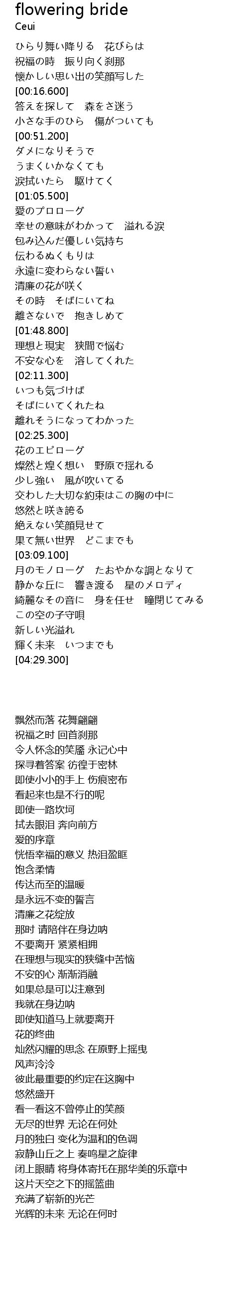 | [00:00.000] | ひらり舞い降りる 花びらは |