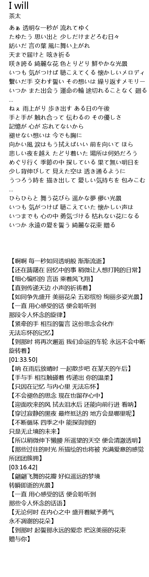 | [04:12.18] | いつか 永遠の愛を誓う 綺麗な花束 贈る |