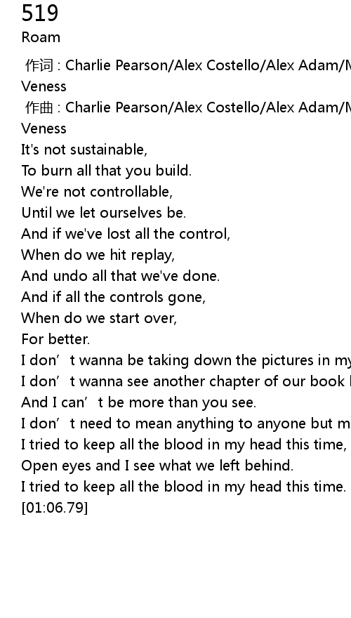 | [00:00.505] | 作曲 : Charlie Pearson/Alex Costello/Alex Adam/Matt Roskilly/Sam Veness |