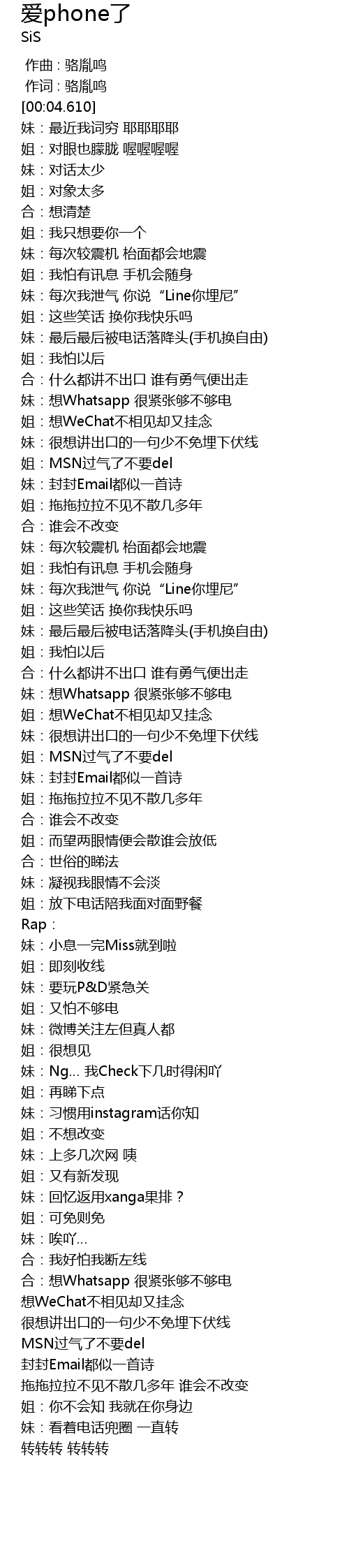 | [00:39.610] | 妹:最后最后被电话落降头(手机换自由) |