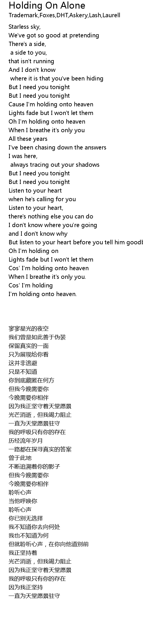 | [02:33.42] | Cos' I'm holding onto heaven |