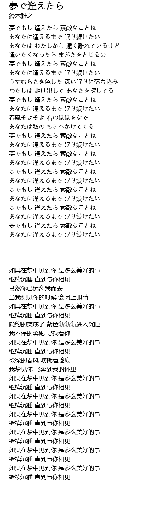| [02:38.73] | 夢でもし 逢えたら 素敵なことね |