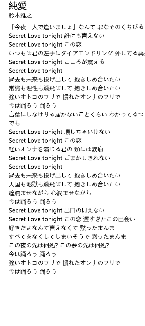| Secret Love tonight この恋 遅すぎたこの出会い | |
