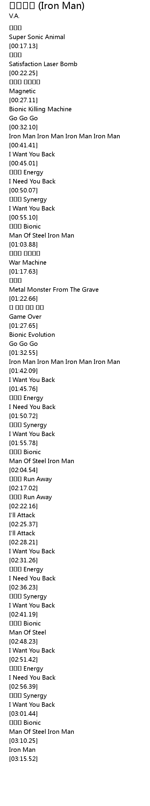| [01:33.29] | Iron Man Iron Man Iron Man Iron Man |