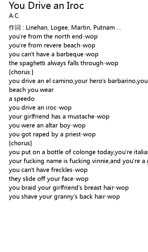 | Song | You Drive an Iroc |