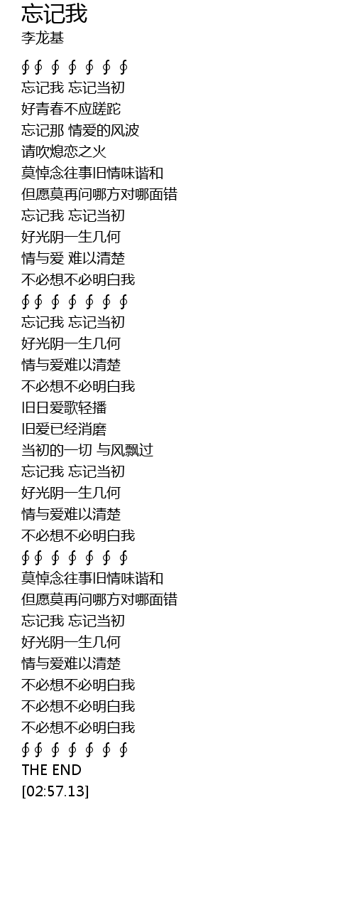 | [00:57.38] | wàng jì wǒ wàng jì dāng chū |