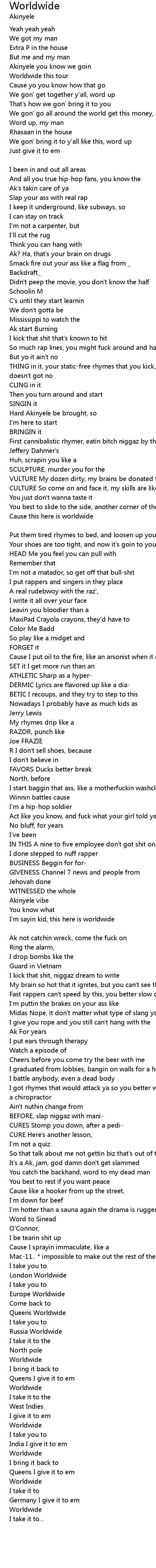 Worldwide -- yeah yeah (repeat 4X) [Akinyele] |