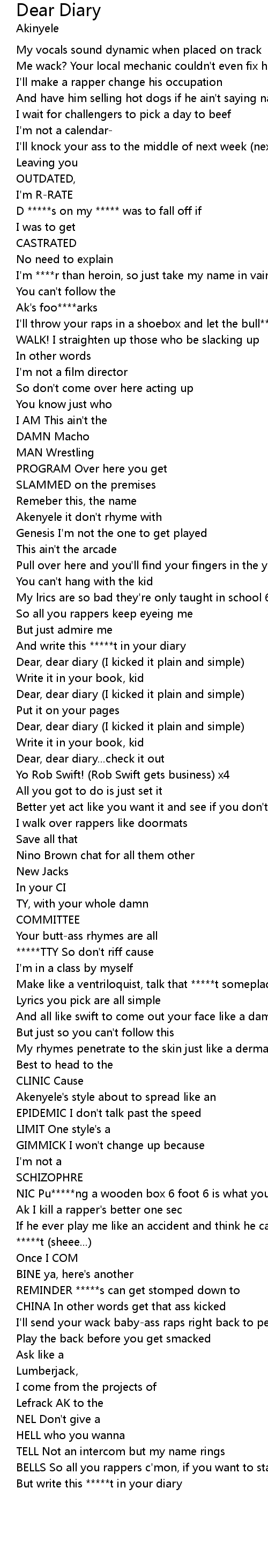 Dear, dear diary (I kicked it plain and simple) |
