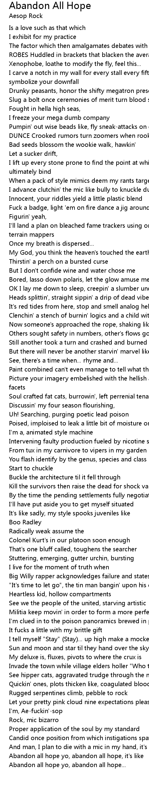 Abandon all hope yo, abandon all hope, it's like |
