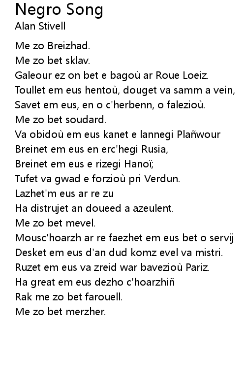 | Song | Negro Song |