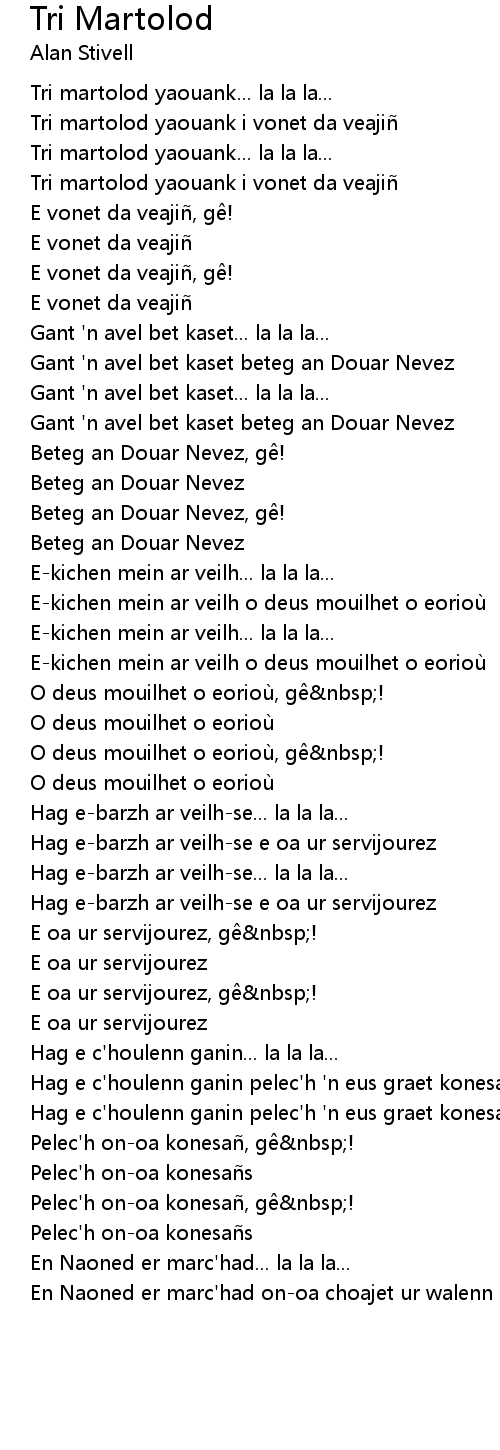 | Ekichen mein ar veilh o deus mouilhet o eoriou | |