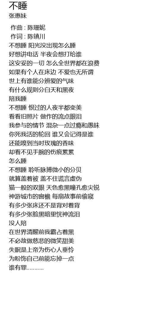 | [01:26.33] | 不想睡 恨过的人夜半都变美 |
