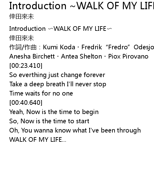 | [00:00.000] | Introduction WALK OF MY LIFE |