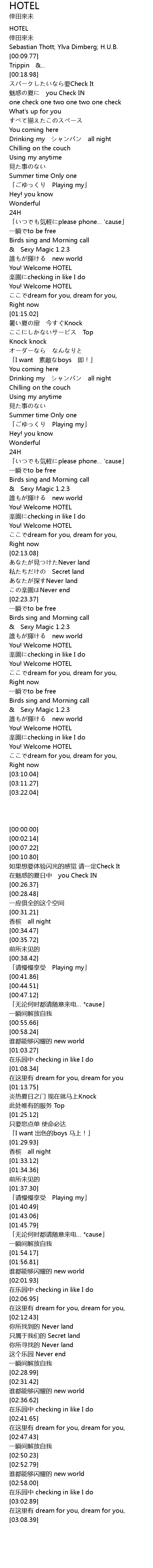 | [02:58.00] | You! Welcome HOTEL |