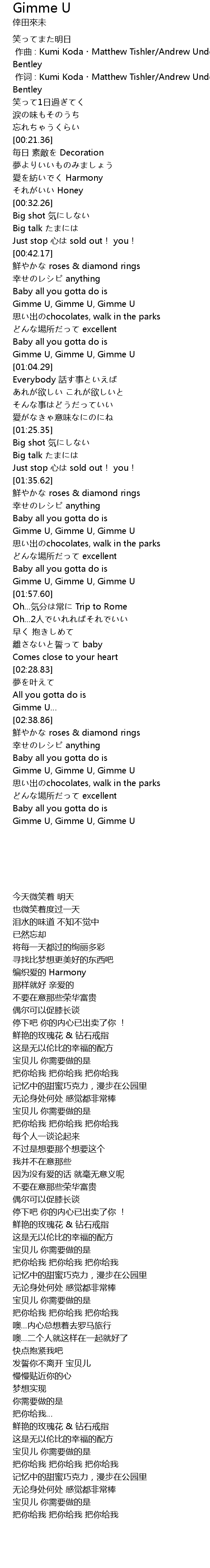 | [02:58.79] | Gimme U, Gimme U, Gimme U |