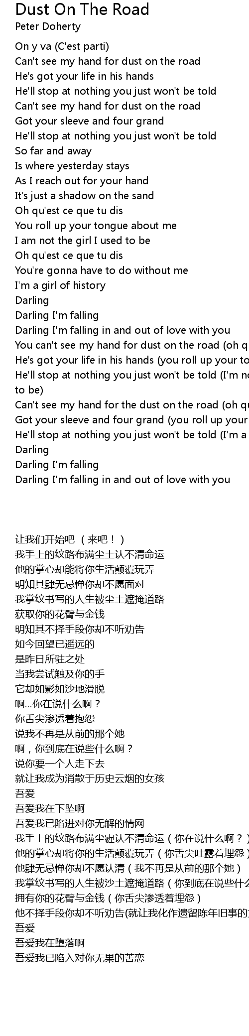 You can't see my hand for dust on the road (oh qu'est ce que tu dis) |
