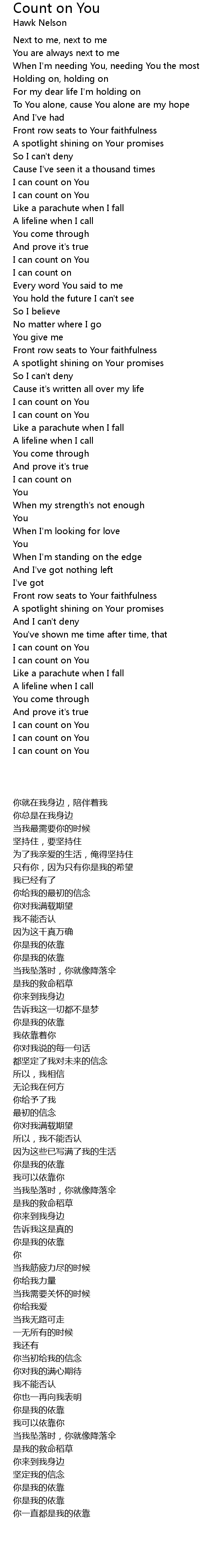 I can count on You |