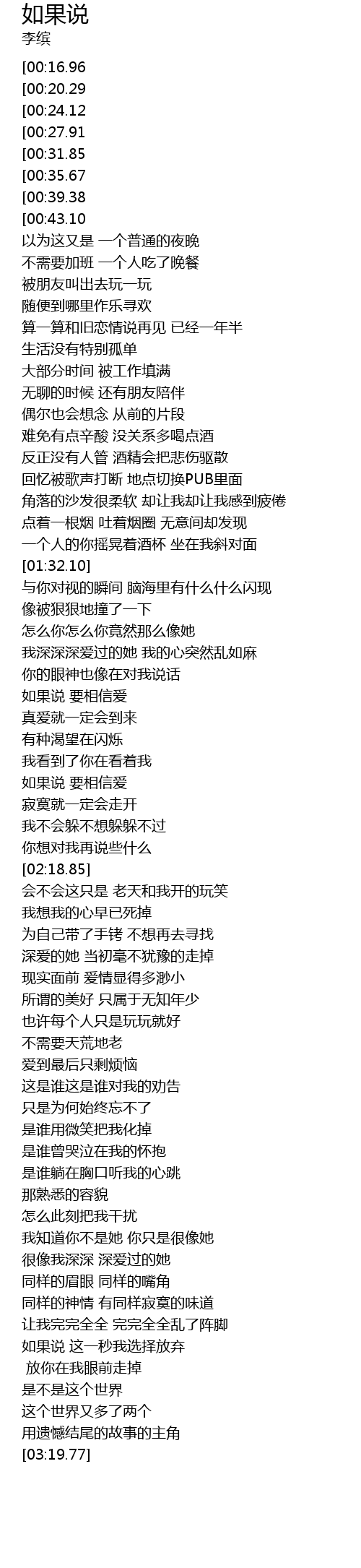 | [03:21.07][00:16.96] | ru guo shuo yao xiang xin ai |