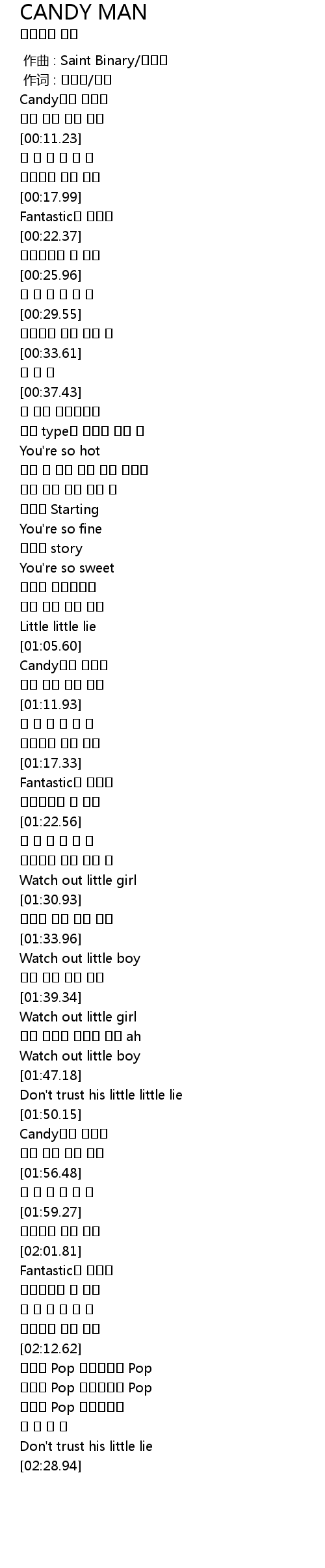 | [01:51.71] | Candy처럼 달콤한 |